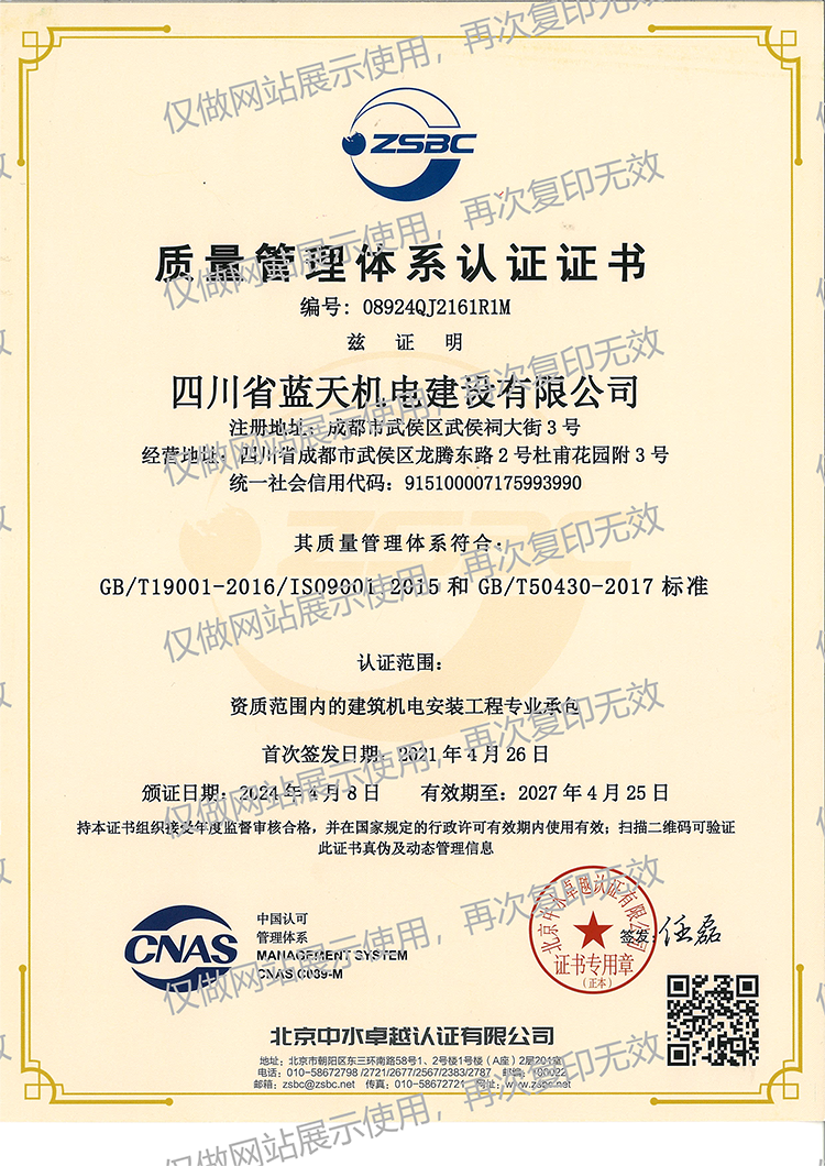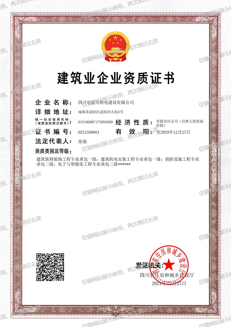 蓝天机电建筑业企业资质证书