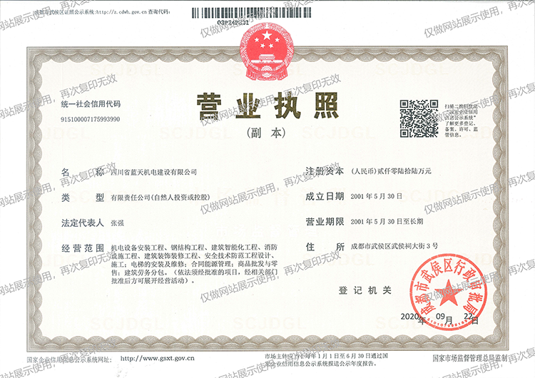 蓝天机电营业执照副本