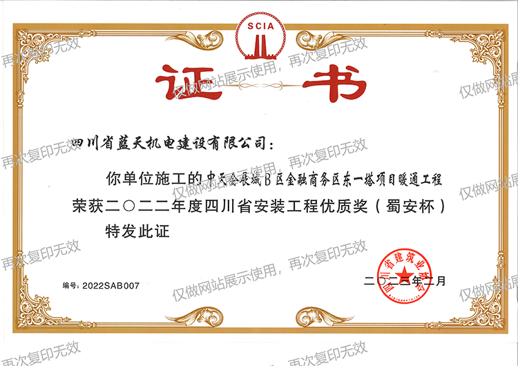 安装工整优质奖(蜀安杯)2022年