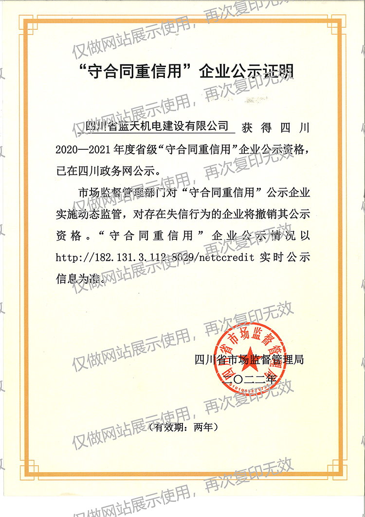 颁发守合同重信用证书 2020-2021